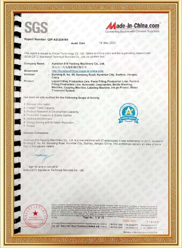Компания получила более 20 патентных сертификатов, удостоена таких наград, как высокотехнологичное предприятие, разработчик национальных стандартов для дезинфицирующих средств. Мы строго придерживаемся всестороннего управления качеством от рынка к разработке, производству и продажам; производственный процесс строго контролируется, используется программное обеспечение CAD/CAM, в основном используются нержавеющая сталь марок 304 и 316 (для специальных материалов может использоваться титановый сплав), мы гарантируем быстрый отклик на потребности клиентов через систему управления проектами. После многих лет развития и накопления у нас есть прочная основа, чтобы предоставлять клиентам профессиональные решения для упаковки, профессиональное оборудование для производственных линий и послепродажное обслуживание, повышать уровень автоматизации производства клиентов, максимально повышать эффективность производства клиентов, становясь вашим заботливым партнером в решении проблем розлива.